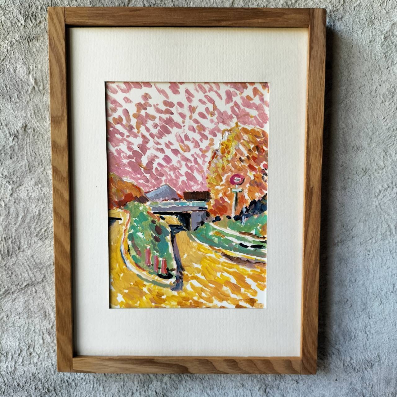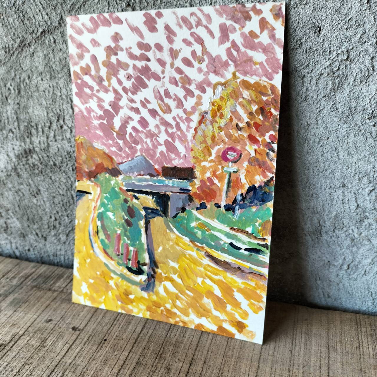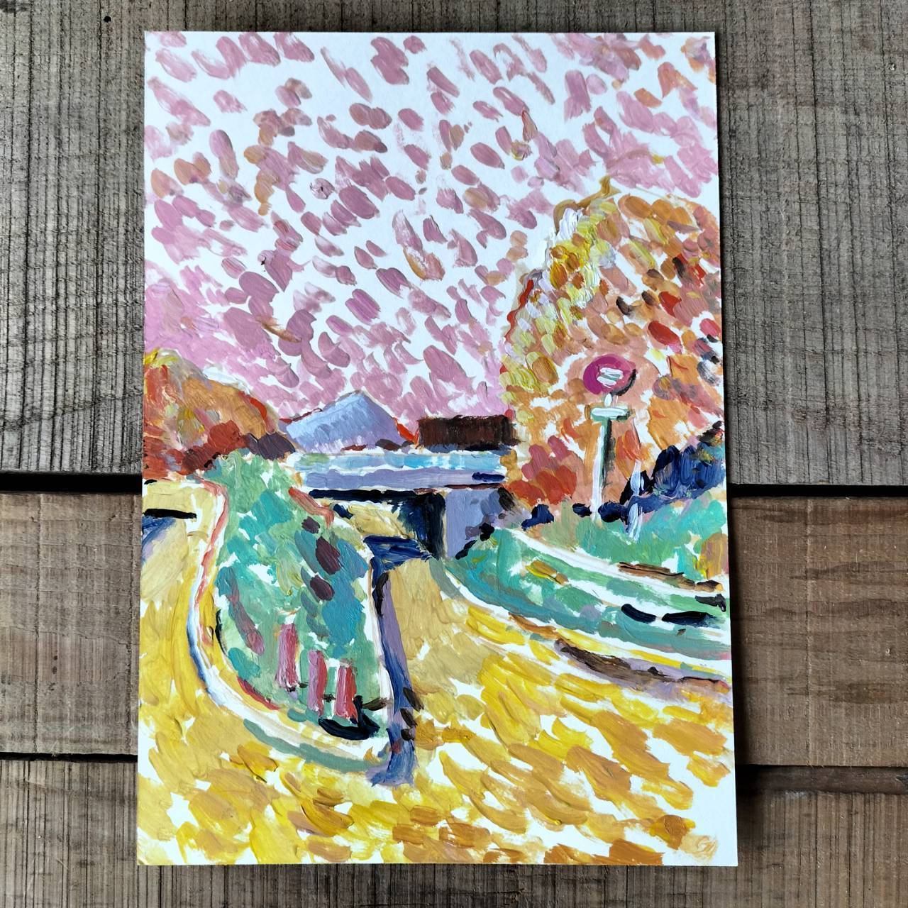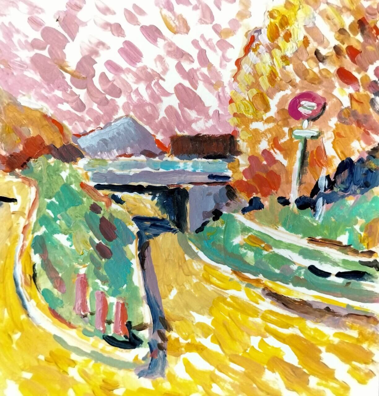 岐阜市から恵那に帰る途中に、車から眺めた道を描いたドローイングです。夕方、僕にはその道が、こんな風に見えました。